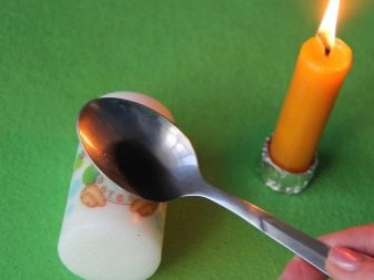 You can’t squeeze the napkin too much, you can’t overdo the hot spoon over the napkin. From this, unsightly paraffin bands may appear in the picture. As the napkin is absorbed into the candle, it will become transparent. As the cooling cools, the spoon needs to be heated again and again over the auxiliary candle.
