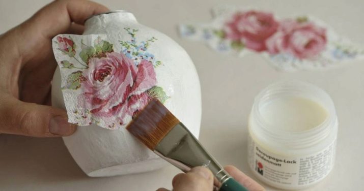 If the vase needs tinting, shading the background and other works that enhance the artistic value of decoupage, they are carried out before applying the varnish coating.