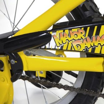 Models with 12, 14, 16, and 18 inch wheels come with hand and foot brakes. The 20-inch version is equipped only with manual braking, as children learn to coordinate their hands as they get older.