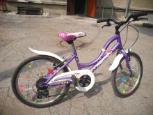 Merida FOX J20 (2018) - A very stylish urban model with excellent performance and excellent technical equipment. Recommended for girls aged 5 to 9 years. Country of origin - China. The diameter of the wheels is 20 inches. The frame material is aluminum alloy. The bike is equipped with mutual mechanical brakes, a gear selector, a wide ergonomic saddle, a trunk with a reliable latch.