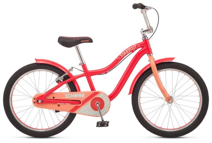 Schwinn Stardust (2019) - A spectacular and ergonomic bicycle model developed in the USA. Country of manufacture - China. The model was assembled on the basis of a high-strength aluminum frame. The diameter of the wheels is 20 inches. The bike is equipped with mutual mechanical brakes, providing reliable locking of the wheels even on slippery roads. The color of the frame is presented in two versions: red and green.