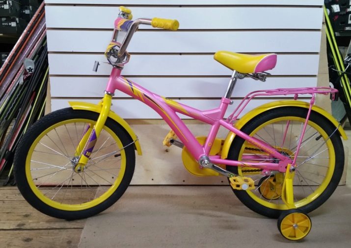 This 2-wheel bike is ideal for any child 3-6 years old, regardless of gender. The choice of colors for this design is as follows: red, black, blue, purple, pink or green. The model is designed for trips around the city and has a special landing. The bike has 1 speed and a diameter of 14, 16 or 18 inches. The country of assembly is China. The design is completely made of steel.