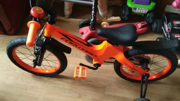 Of the optional accessories, the bike is equipped with wings, a boot, a bell, supporting wheels and reflectors.