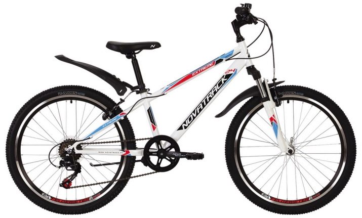 - Novatrack Extreme 24 6 - The bike is suitable for brave and decisive boys, as it is equipped with rim brakes that quickly lock the wheels even if the child is riding on wet roads. Tires have enhanced traction characteristics, steel frame. The size of the wheels is 24 inches, there is a double rim. The number of available speeds is six. Classic pedals. Wings, horn and footrest are included. The price starts from 9 thousand rubles.