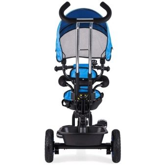 In terms of price and quality, a very good bike. The seat has a comfortable anatomical shape, endowed with 5-point safety belts. It can be moved away from the pedals as the child grows. The design has an awning from the sun and a comfortable footrest. The handle pusher is reliable, ergonomic and easy to operate.