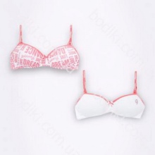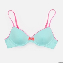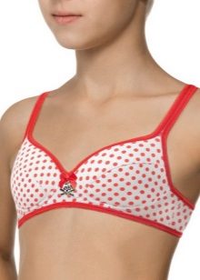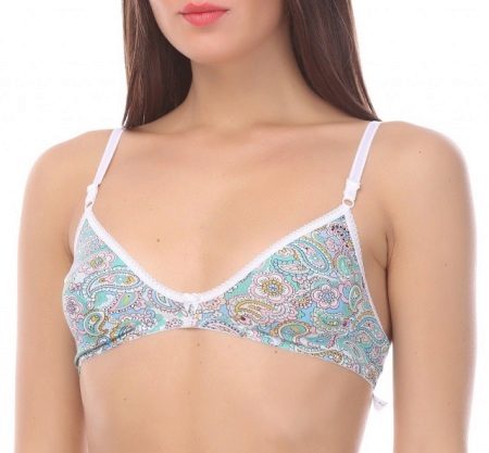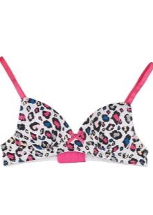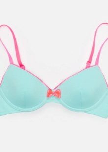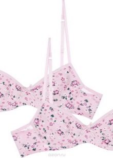 The colors are mostly reminiscent of either a sporty style, or it's cute, childish colors. Bright and colorful drawings in the form of peas, flowers and berries, bows and stripes are the most common prints. If the bra is made in a monophonic version and somehow reminds the girl of a swimsuit, then it will be easier for her to get used to the new subject of her wardrobe.