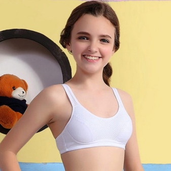 The triangle is most similar to the adult form, but does not have stones and dense inserts in the cup. Top bras look like T-shirts, they are beautiful and very comfortable to wear. This style has a less supportive effect compared to sports models.
