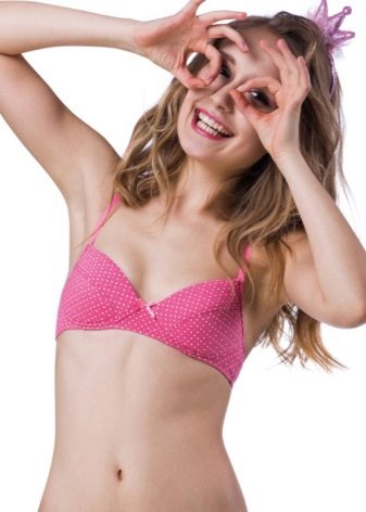 A model with a push-up effect is not recommended not only for physiological reasons, but also for aesthetic ones. At such a tender age, such tricks look absolutely inappropriate. In addition, this can adversely affect the development of the chest due to the inevitable squeezing of blood vessels. But special removable tabs from the fabric are quite acceptable.