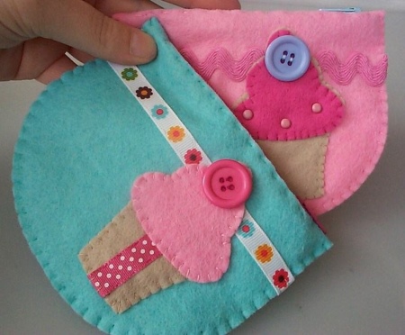 Sew the patterns between them from the wrong side, turn them around and make out as you wish. You can sew a lace, then you get a nice bag for storing money or keys. You can sew ears, mustaches and eyes and you get a funny face of the animal. There can be a lot of jewelry options.
