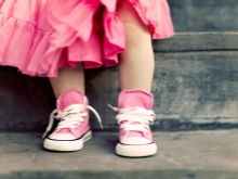- Pink sneakers are most often chosen by mothers for babies, as well as for girls aged 6 to 10 years. Depending on the shade, the sneakers will look tender and romantic, or bright and perky.
