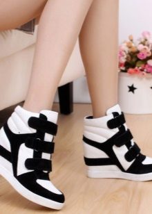 Fashionable sneakers on a wedge with a big tongue and Velcro, instead of laces, teenage girls will especially like the model because it looks incredibly stylish and is a rather popular part of an adult wardrobe.