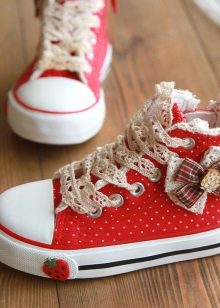 - Red sneakers, like gray and blue, belong to the classic range of the color palette, so many people opt for them most often. Models of these shades most successfully fit into many images.