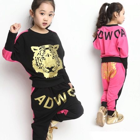 - A two-sided tracksuit, with loose pants and a bat jacket, will go well with golden sneakers with high sides and a slightly elongated tongue. The costume also has a golden print, so the products will be in harmony with each other.