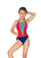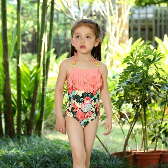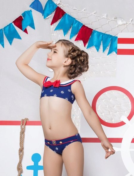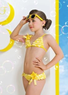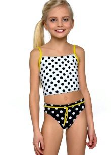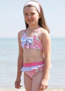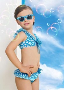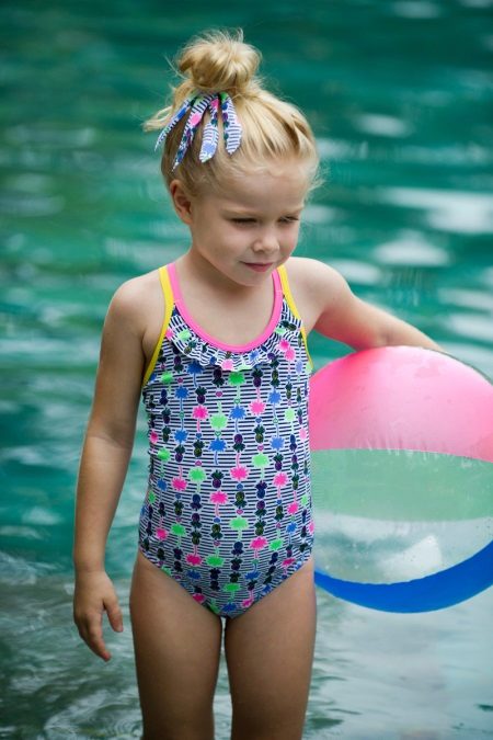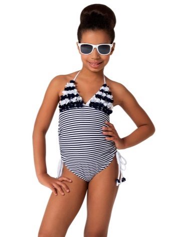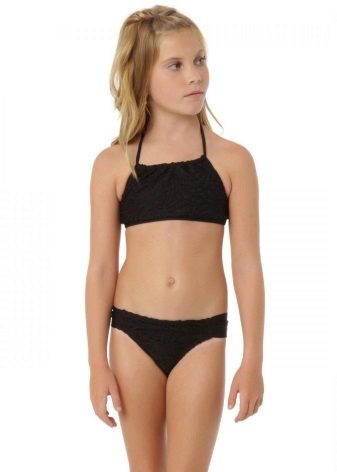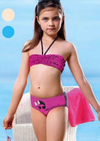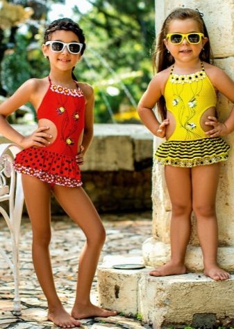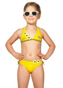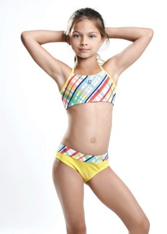 Brassieres with tied shoulder straps are especially convenient, because you can always adjust the bathing suit for the height and physique of the child. For very active children, one-piece swimwear is more suitable.