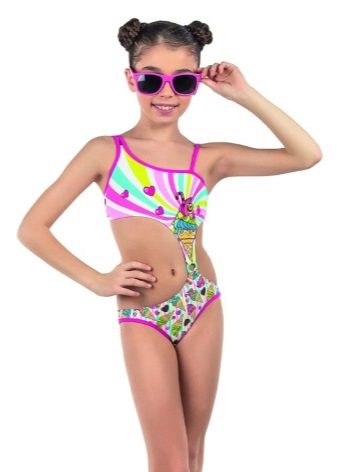 The range of swimwear for girls of different ages is very diverse. Swimwear varies in appearance of the bodice and panties, colors, jewelry, the presence of additional decor items, etc.