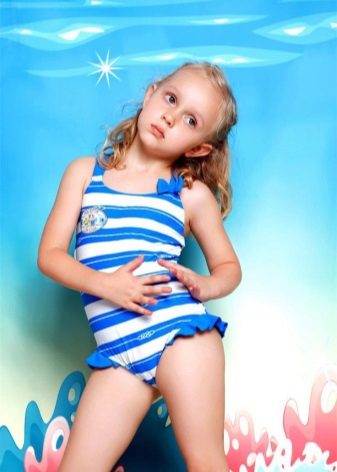 The bathing suit should clearly fit the child in size, not be small and not hang on the body. The sports model of a swimsuit ideally has no decorative details. If a swimsuit is selected for the beach, then the amount of decor depends on the age of the child. For a little girl, models with beads, sparkles and other small ornaments are undesirable.