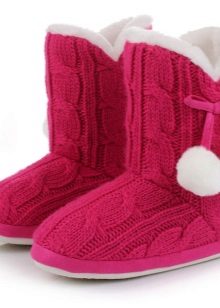 Another unusual model of slippers is uggs. Visually, they are very reminiscent of the modern and fashionable element of winter shoes. They are made of light, bright yarn, sometimes supplemented with sheepskin. Another variation on the theme of winter shoes is felt boots.