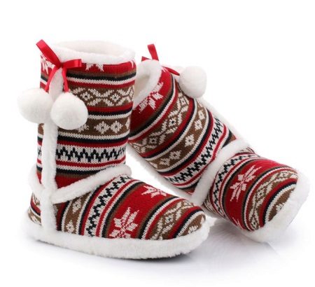 Such models are often decorated with thematic drawings, for example, snowflakes, Christmas trees, snowmen. New Year slippers - uggs or felt boots - A great gift for a little fashionista and a teenage girl.