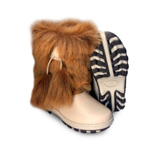Russian company Moregor produces children's high fur boots with an edge from a muton and nutria. Due to modern technology, shoes have the highest thermal insulation performance. The outsole remains flexible even at the lowest temperatures. Products are distinguished by a rather reasonable price and original design. The company offers a variety of colors for high boots - it is easy to choose shoes for any clothes.