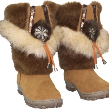 When choosing boots for girls, pay attention to the quality of the fur trim. As you know, these high fur boots are made from deer fur (as an option, moose and red deer). Some manufacturers reduce the cost of production using horse or cow skins, but such shoes can not withstand severe frosts. High-quality high boots can not be cheap, becausethey take a significant amount of natural fur.
