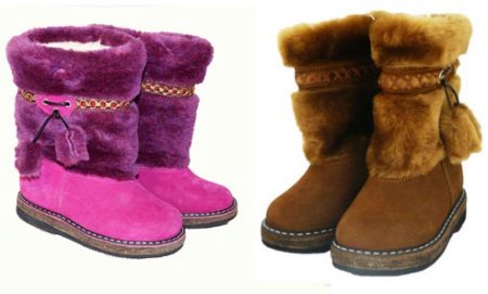 In general, high boots are traditional footwear of the northern nationalities, a kind of analogue of the primordially Russian boots. As for children's models, they are sewn exclusively from natural raw materials: the bootleg is usually made of thick sheepskin, also fur of deer, rabbit, and a species of fox - corsac. And inside the fur boots are usually insulated with a layer of felt, a warm insole is required. All these materials provide normal heat transfer: children's legs in high fur boots will not freeze and will not fog.