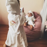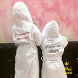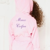 Often, the choice of product stops on options with embroidery on the back. In addition to the pattern, the main theme is the embroidered names of the children. A branded bathrobe with its own name looks very original and cute.