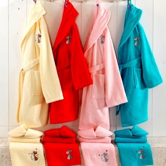 One model can combine several shades and different patterns. Little fashionistas choose puppet tones, and older girls prefer plain versions with a small patch. Applications with princesses, fairies, bears are not only the decor of the dressing gown, but also its feature.