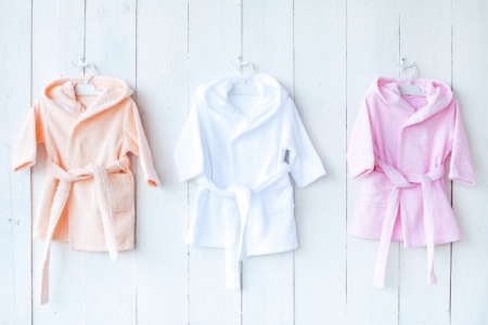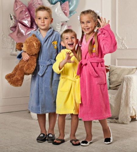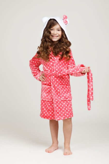 - A wide range of sizes allows you to choose bathrobes for girls of different ages. The choice should take into account the opinion of the child: girls often have their own preferences for color and design of clothes. Craving for beauty will allow you to properly form the taste and style.