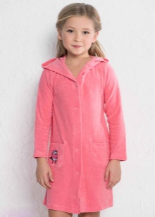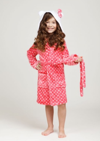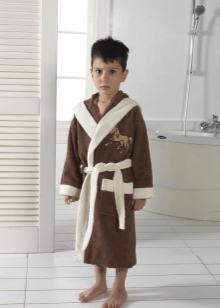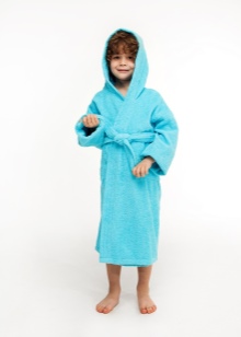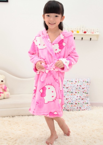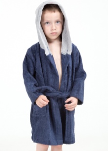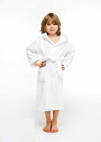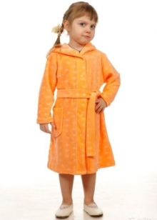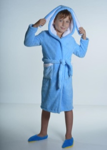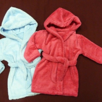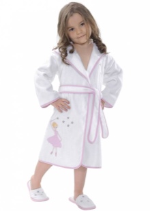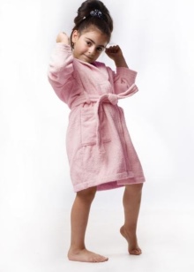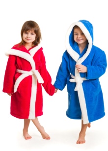 The dressing gown can have different lengths. If these are bath models, then their goal is to quickly warm and dry the child after water procedures. Therefore, they should be long, put on quickly and not cause an uncomfortable feeling. Dressing gowns as clothes for home can have different types of fasteners, their length can vary.