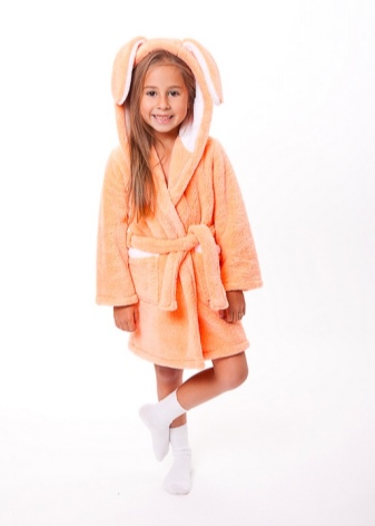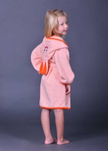 Despite the fact that more practical options are most often used as home clothes - a T-shirt, shorts, leggings, a dress, a sundress, a children's bathrobe with a hood will probably be found in the wardrobe of every child. It is usually used as warming clothing after taking a shower or bath.