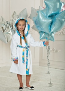 - As a rule, children's bathrobes do not have complex fasteners (zipper, button, hooks). Dressing gowns are performed with a smell and are complemented by comfortable belts.