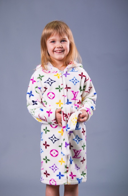 A bathrobe, like home clothes, is most often printed. The most popular ornament for decorating bathrobes for girls, of course, are flowers and fairy-tale characters.