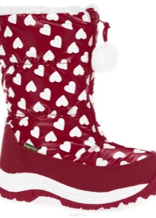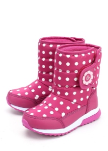 For girls, winter boots are designed in bright colors or with fashionable prints. The dutiks of little fashionistas are decorated with funny ties, flowers and a fur edge.
