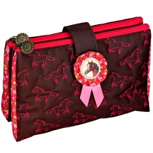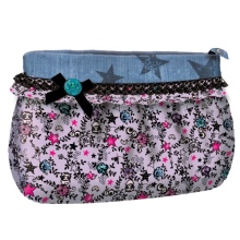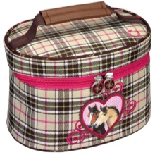 Teenage girls choose more “adult” and feminine models of cosmetic bags, more reminiscent of elegant handbags. They are made of leather, suede or denim and are decorated with beautiful embroidery, a photograph of a favorite singer or actor, metal decorative elements.