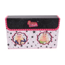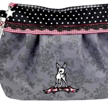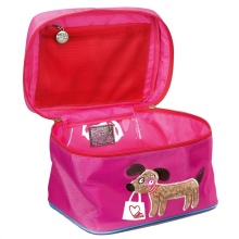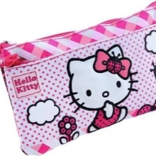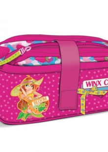 Cosmetic bags for the smallest are made in the form of a funny kitten, puppy, teddy bear or are decorated with the image of a fairy fairy, princess, favorite cartoon character, for example, Barbie, Hello Kitty, Disney character.