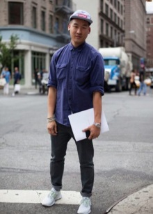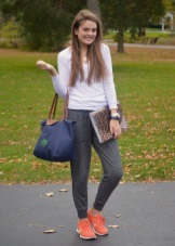 Before helping the child with the choice of wardrobe for a pair of sports shoes, find out his tastes. Perhaps your son gravitates to a restrained classic? Then the best choice would be sneakers shoes of a neutral shade. You can safely pick up black trousers of laconic casual style to them.