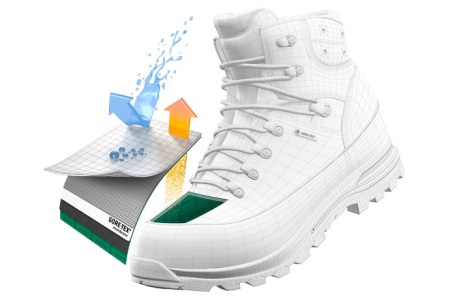 Membrane fabric is usually located between the inner and outer layer of the upper shoe. Micropores, which are several times smaller than the diameter of a human hair, perfectly pass excess moisture and air from the shoe, but due to their meager size they do not allow water molecules to penetrate inside. Due to this, the leg in such a sneaker will always remain dry.