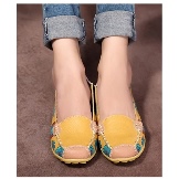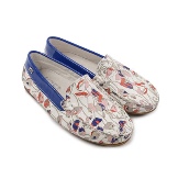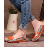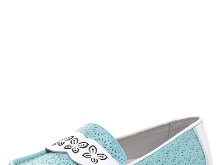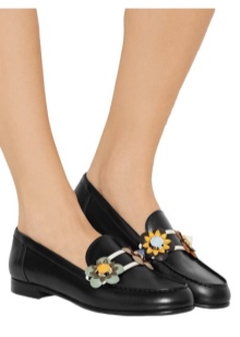 With such shoes, you can wear a fluffy dress in color or a wide bright sundress. Lacquered moccasins decorated with floral appliques will harmoniously look in such a dress.