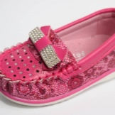 For a little fashionista it is better to choose a model from natural and high-quality material. Soft leather or textile moccasins with breathable surfaces will be very comfortable to wear. It is better to refuse a skin substitute. Pay attention to the material of the sole: the soles of polyurethane and thermoplastic elastomer are the highest quality.