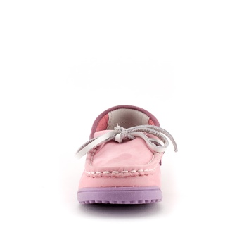 Stylish children's moccasins for girls 3-5 years old from the company "Zebra" are made of genuine leather. The lineup is represented by delicate colors. Models made of natural pink suede look very cute. The leg lift can be decorated with a classic lace-up knot for moccasins or a bow with a metallized insert.