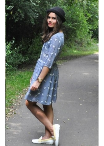 Moccasins will look harmoniously with straight and fitted dresses of medium length. Solemn floor models are best worn with heel or platform loafers. You can complement the outfit with the help of a flirty bolero and clutch.