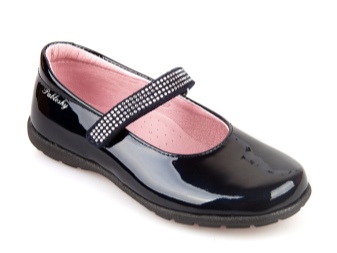 Beautiful black boats from a combination of patent and sparkling leather will make any schoolgirl look elegant.
