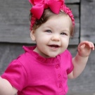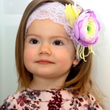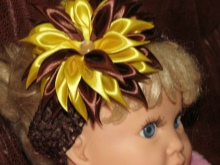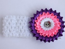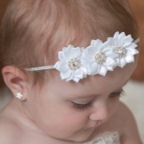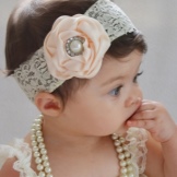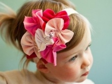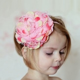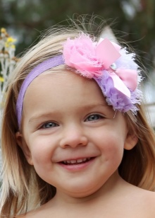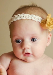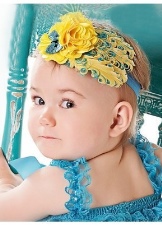 Breasts are often bought with wide openwork elastic bandages with a large multi-layered flower. They do not squeeze the delicate scalp, do not harm health and do not interfere with the child.