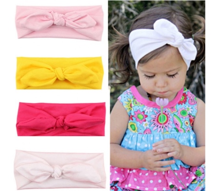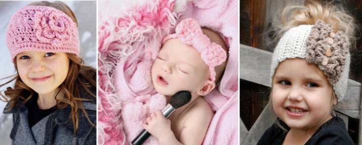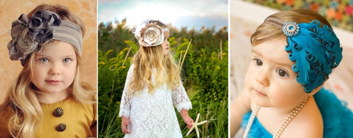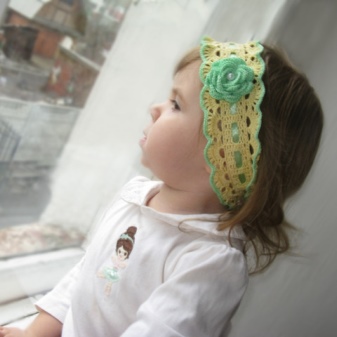 Options for little girls are made of knitwear with a small knot. They are safe and wire free. Such dressings are firmly fixed on the head due to the material itself.