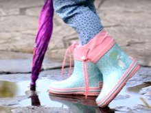 Rubber shoes can also be fashionable and stylish! For example, in this case. Boots made in a combination of blue, blue and white perfectly complement the suit of a little fidget. A pale blue model with a light pink decor fits perfectly into the wardrobe of a young fashionista.