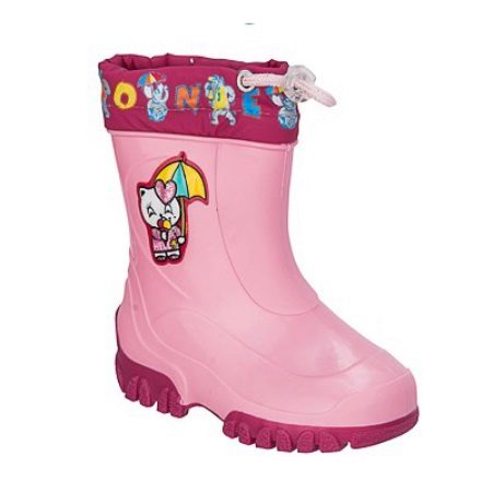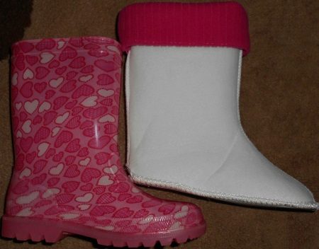The inner layer of rubber boots is decorated with a textile lining, and the insole can always be removed and dried if necessary. For cool days, models are provided with a removable toe that will keep the baby's feet warm. The bright drawstring provided in the upper part of the shaft prevents moisture from entering the boot.