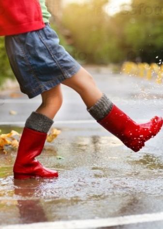 Rubber boots - an indispensable option for combination with raincoats, windbreakers, parks and jackets. It is great if the boots are made in the same color combination with a children's umbrella or raincoat.