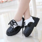 Oxfords look like low shoes with lacing, they have a square heel. Such a couple becomes a frequent choice for high school students accenting a rebellious style. Oxfords, worn over high socks and complementing a bow from a short full skirt and a white blouse, add to the style of the form the spirit of the anime, so beloved by teenagers.