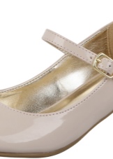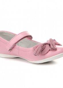 For elementary school, shoes with a Velcro fastening strap are ideal. They will provide the most accurate fit, and a low wide heel will protect little ladies from fatigue. Fixation will help to avoid the possible loss of shoes when running. A small bow made of leather and a gold buckle is more than enough for a couple decor.
