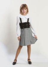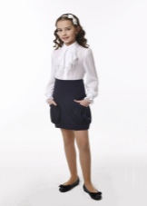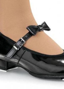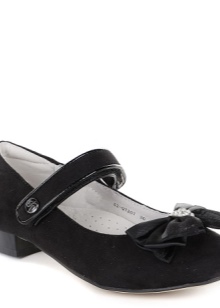 A universal option that is suitable for students of different ages are Mary Jane shoes. They are combined with any shape and vary in heel height depending on the age of the girls. Some models are decorated with rhinestones or metal fittings and are suitable for solemn rulers and school holidays. Designs are classic boats with a thin elegant clasp and a miniature bow tied from a leather cord. Sometimes the clasp can be double.